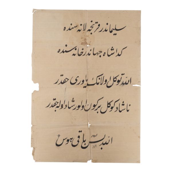Okunuşu: "Kâbetu´l-uşşâk bâşed în makâm / Her ki nâkıs âmed încâ şüd tamâm"