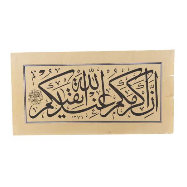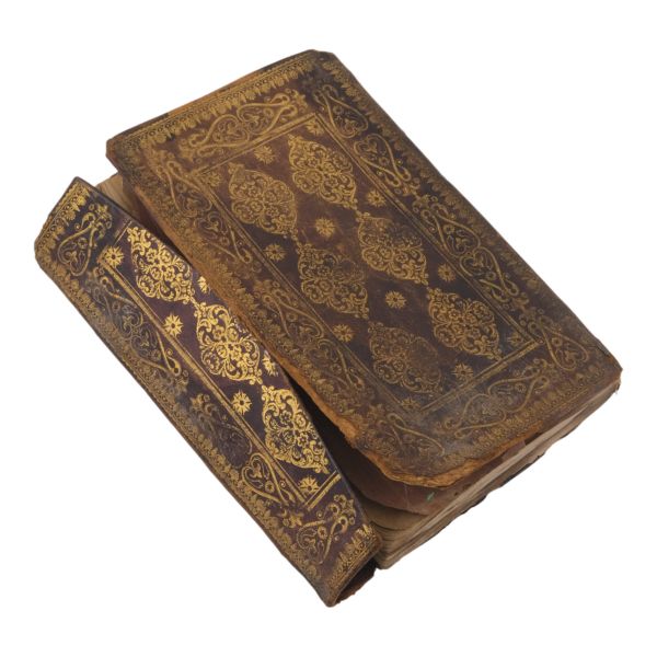 MIklebli, zencerekli deri dönem cildinde. Serlevhalı, altın cetvelli ve tahrirli, altın duraklı. Talik yazıyladır.