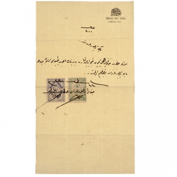 Lot içeriği: 1) Halife Abdülmecid´in elbise odasında elbise kurutmak için satın alınan kordon tel için "Volkan Elektrik Şirketi" tarafından kesilmiş fatura, 2) Halife Abdülmecid adına bastırılan kartvizit ve kartvizit klişesi için "Ahmed Nazmi Matbaası" tarafından biri hilafet makamına biri de saraya kesilmiş iki adet fatura, 3) Halife Abdülmecid´in tuğrasının yer aldığı, "Akşam Taamı" başlıklı bir yemek menüsü, 4) Halife´nin Fatih Camii´nde katıldığı Cuma Selamlık Merasi´nde imam ve müezzinlerin adlarının yazılı olduğu bir liste, 5) Dahiliye Levazım Müdürü Cemil Beyefendi´ye gönderilmiş bir davetiye, 6) Halife Abdülmecid´in tuğrasının yer aldığı, "Saray-ı Hilafet Penahi Nazırı Cemil Bey Efendi´ye" yazılı kartvizit, 7) Halife Abdülmecid inisiyalli mektup zarfları, 8) Halife Abdülmecid’in hizmetçileriyle ve bahçıvanlarının fotoğrafları.