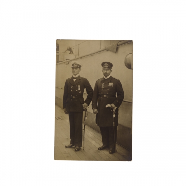 Lot içeriği: 1) Zırhlının adı henüz "Goeben" iken mürettebatının gemide çekilmiş fotoğrafı, 2) Birinde "SMS GOEBEN" diğerinde "S.K.O.M.S JAVOUS SULTAN SELİM I." yazılı iki adet şapka bandı, 3) Birinci Dünya Savaşı sırasında Almanya ve Osmanlı tarafından verilen madalyalardan oluşan madalya barı, 4) Demir Haç Madalyası, 5) Çanakkale Muharebeleri´nde Yavuz Zırhlısı´nda görev almış Alman Onbaşı Monselle´ye verilen Harb Madalyası´nın beratı, 6) Mürettebatın kullandığı 3 adet Almanca kimlik, 7) Yavuz Zırhlısı´nın göründüğü fotoğraf ve kartpostallar.