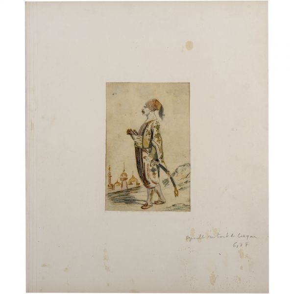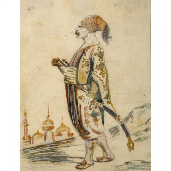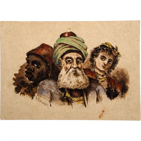 Hakkında pek bilgi sahibi olmadığımız Rum ressam Manarakis, Bizans tarihi uzmanı Alexandros Paspatis´in "Byzantinai Meletai" adlı anıtsal eserinde kullanılmak üzere yapılmış olan ve Bizans dönemi kiliselerinden çevirme camileri konu alan resim serisiyle daha önce de karşımıza çıkmıştı. Bunun dışında, 1871-72 yıllarında İstanbul surlarının ve kapılarının çeşitli resimlerini çizdiği açık kaynaklarda belirtilmektedir. Müzayedemizde sunduğumuz tipler ve kıyafetler konulu bu çalışmasının arkasındaki "No. 33" ibaresi, bu çizimin de bir serinin parçası olduğunu düşündürtmektedir.