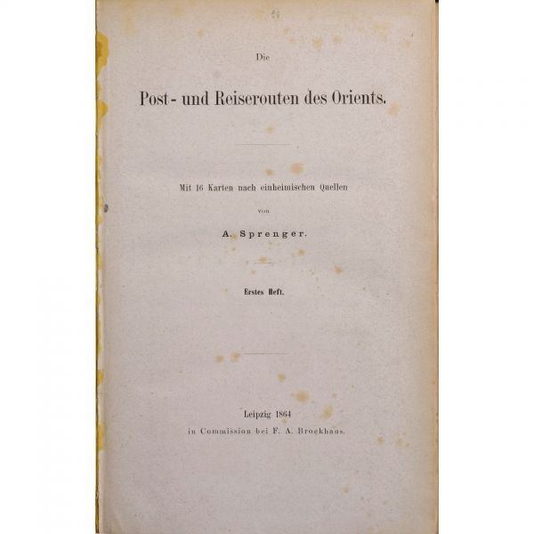 Avusturyalı/Alman doğubilimci ve İslam araştırmacısı Aloys (Alois) Sprenger´in (1813–1893), Orta Doğu’nun tarihi posta yolları, seyahat güzergâhları ve ulaşım ağları üzerine kaleme aldığı ve 16 adet katlanır harita ile desteklediği çalışması.