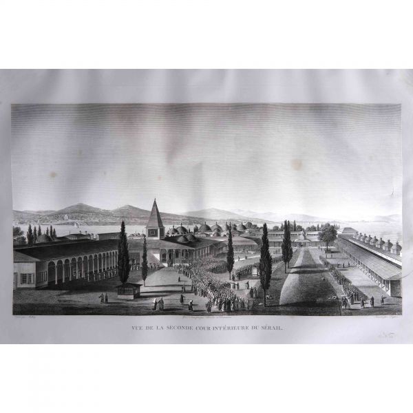 Orhan Pamuk´un, "Boğaz manzaralarını konu edinen bütün Batılı ressamlar içerisinde görmenin ve seyretmenin zevklerini bana en çok tattıranı ve bana en inandırıcı geleni Melling´dir." satırlarıyla söz ettiği Antoine Ignace Melling, henüz 21 yaşındayken Rus elçiliğinin yazlık ve kışlık saraylarının dekorasyonu için İstanbul´a getirilmiş, yaptığı çalışmaların başarısı kısa sürede Topkapı Sarayı´na kadar ulaşmıştı. 1804 yılında Sultan III. Selim´in kız kardeşi Hatice Sultan´a ait Neşetâbâd Sarayı´nın onarım ve dekorasyonuyla görevlendirilen ve dedikodulara göre sarayda bulunduğu zaman diliminde Hatice Sultan ile fırtınalı bir aşk yaşayan Melling´in, Hatice Sultan ile Latin harfleriyle Türkçe kaleme alınmış karşılıklı mektupları, günümüzde Fransa´da özel bir koleksiyonda muhafaza edilmektedir. *Gravürün sağ bölümünde küçük bir yırtık mevcuttur.