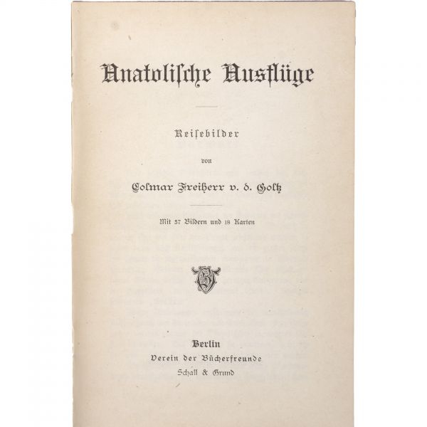 Osmanlı ordusunun modernizasyonunda mühim rol alan, Ordu-Millet Doktrininin yaratıcısı, Birinci Dünya Savaşı'nda Osmanlı ordularını komuta ederken hayatını kaybeden Goltz Paşa'nın, Anadolu içlerine ve kıyılarına yaptığı seyahatleri, çok sayıda fotoğraf (yaklaşık 37, bazıları katlanır formda) ve harita (yaklaşık 18) eşliğinde okurlarıyla buluşturduğu eseri... Sırtı ve ön kapağı altın yaldız başlık ve floral desenlerle bezeli dönem cildinde.
