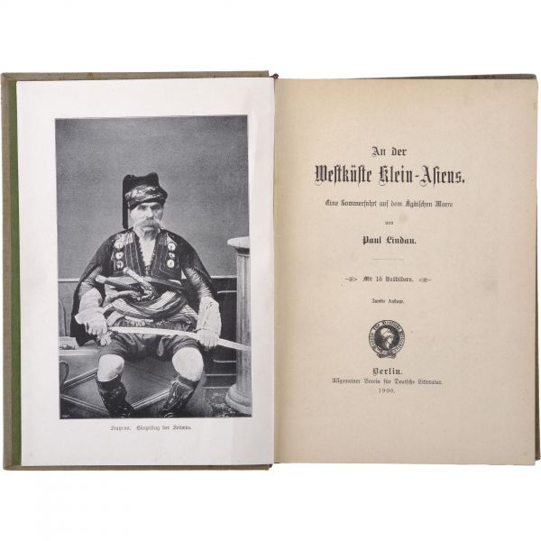 Alman oyun ve roman yazarı Paul Lindau'nun, 19. yüzyıl sonlarında Ege Denizi boyunca gerçekleştirdiği yaz yolculuğunun ayrıntılı bir seyahatnamesi. Çanakkale, Bozcada, Midilli, İzmir, Samos, Batnoz (Patmos), Rodos gibi liman kentlerine ve adalara dair önemli bilgiler içeren eser, yolculuk sırasında çekilmiş 15 siyah-beyaz fotoğrafla zenginleştirilmiştir. Ön kapağı palmiye ağacı dekorlu bez dönem cildinde.