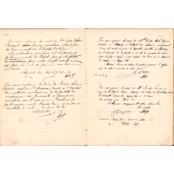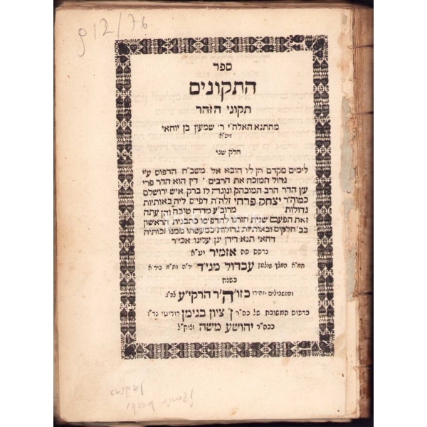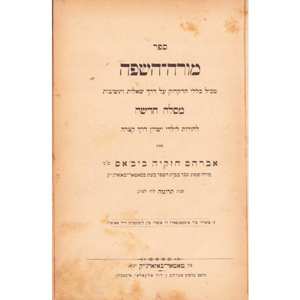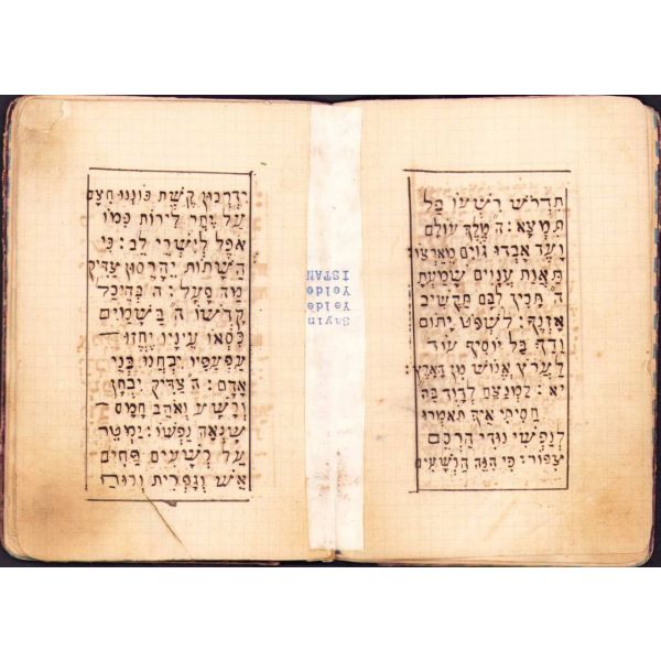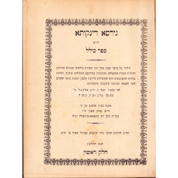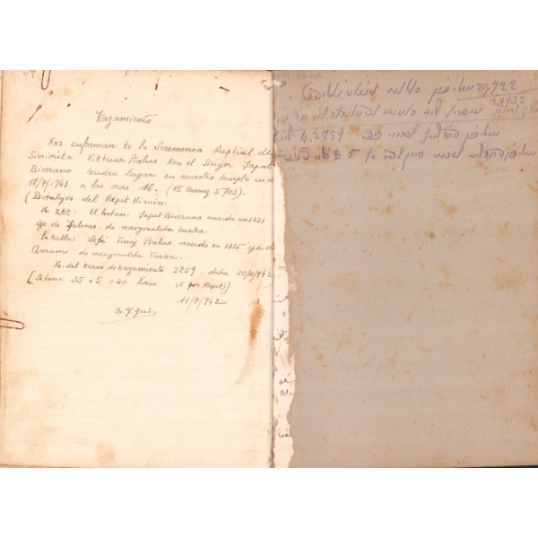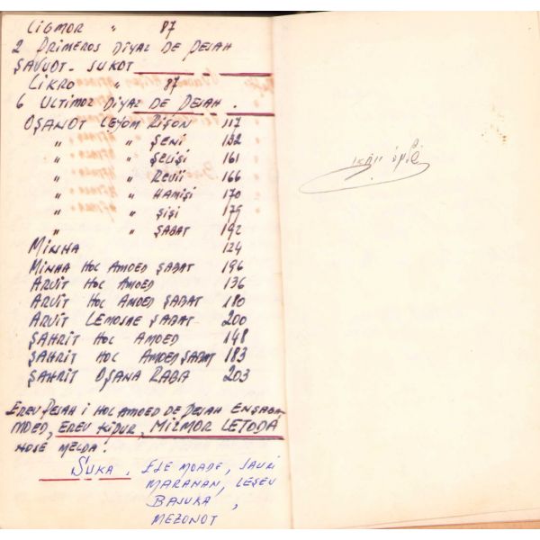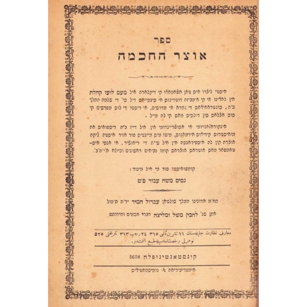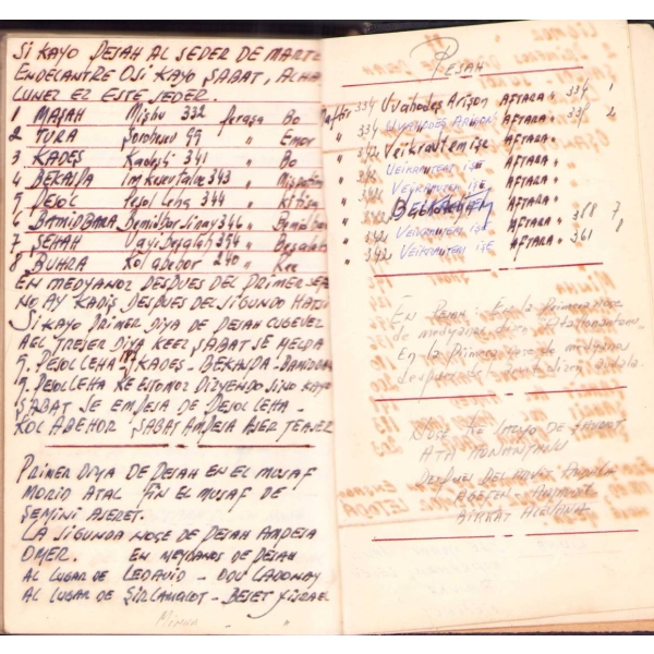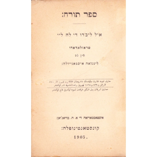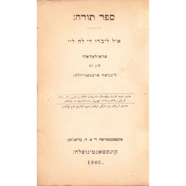 İçi Fransızca ve İbranice Metinler ile Başlayarak İleri sayfaları Ladino ile Yazılmıştır. Sinyor Jak Kamhi, Reina Hija de Salamon, Sinyor Hayim Kohen, Sinyor Yuda Kale Alaton. Karton Cildinde Sırtı Yorgun
