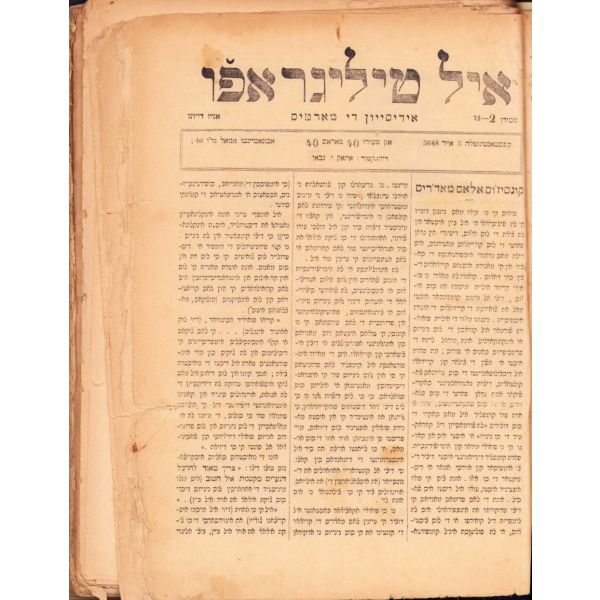 Ladino El Telegrafo journal, publishes on tuesdays, (5648) 1888-1889. 2