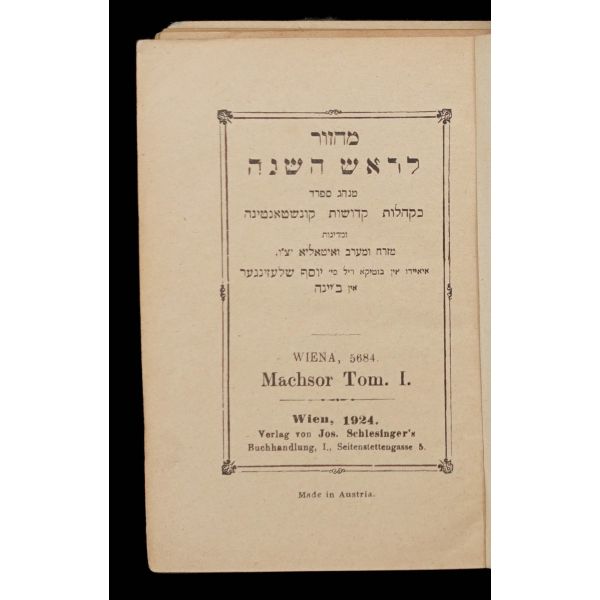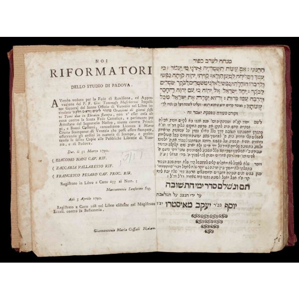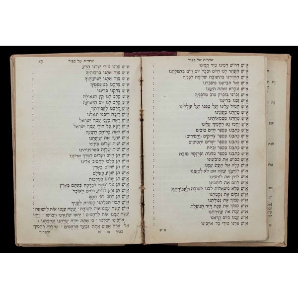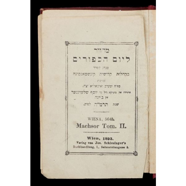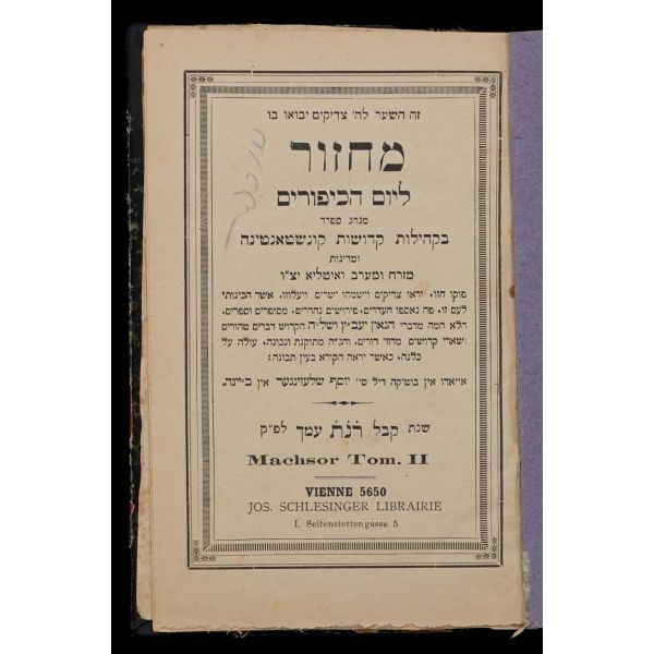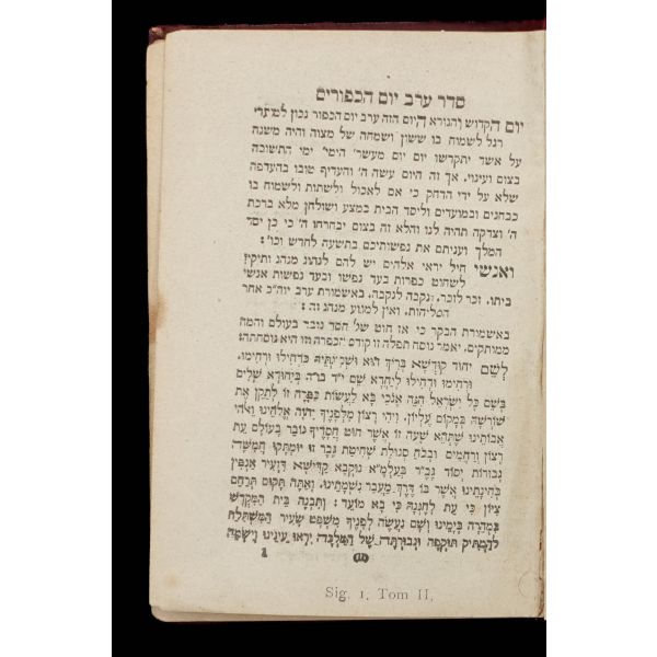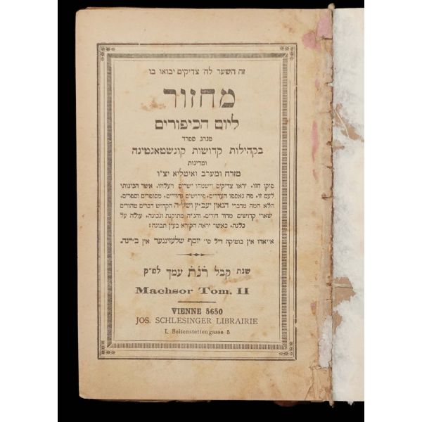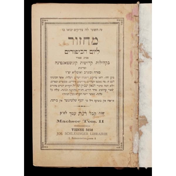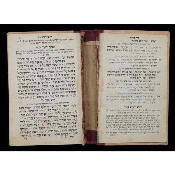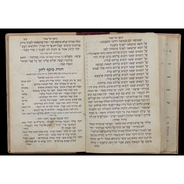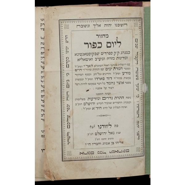 Kefaret Günü dua kitabı. Sefarad adetlerine göre Constantinople ve Doğu ile Batı İtalya cemaatleri için akşam ve gündüz dualarını içerir.
