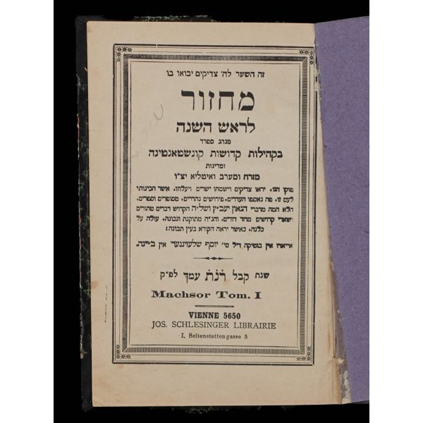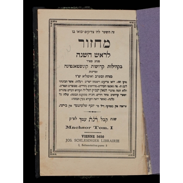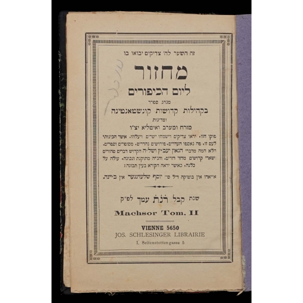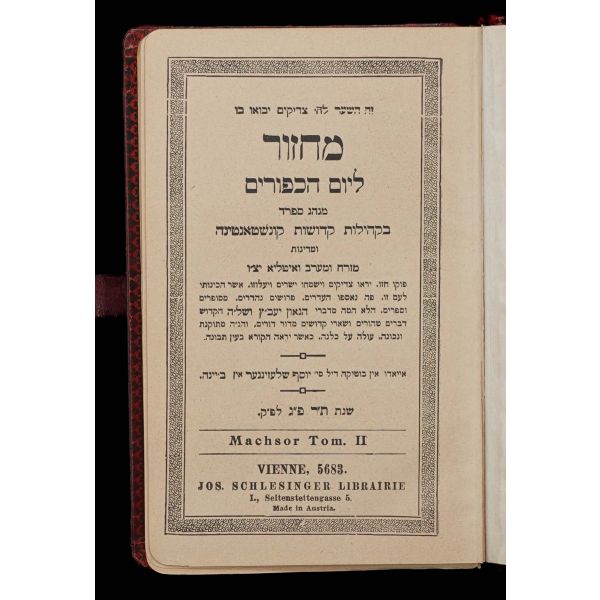 Constantinople ve Doğu ile Batı İtalya Sefarad adetlerine göre Kefaret Günü Yahudi dua kitabı. Altın yaldızlı özel cildinde, yaprak kenarları altın kalemlidir.