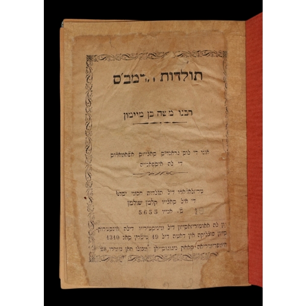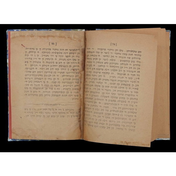 Orijinal deri cildinde, forması kopuktur. 96. sayfa formadan ayrılmıştır. Kitabın son sayfasına Ladino dilinde kitabın hediye edildiğine dair bir not mevcuttur (İzmir). *Künye sayfası eksiktir. 18,5x13 cm...