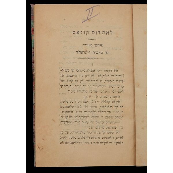 Orijinal kabartmalı karton cildinde. Kapak iç sayfalarında Ladino dilinde "Fiyatı 60 Paradır" ibaresi mevcuttur.