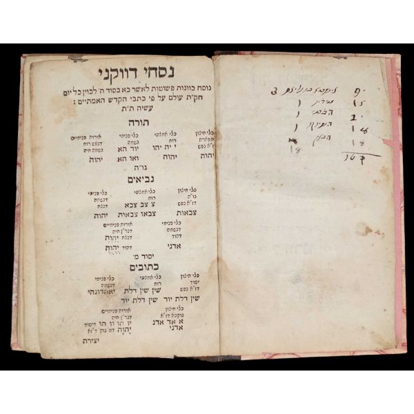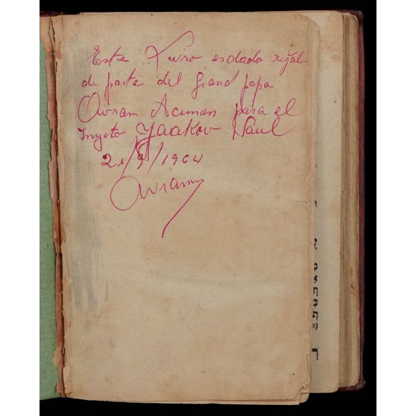 Seder Mesirat Modaa kısmı Ladino dilde yazılıdır. Kurşun kalem ile yazılar mevcuttur. Şelomo Ovadya ibareli.