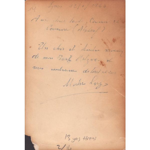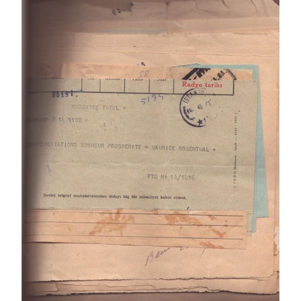 Dosyanın arkasında çok miktarda tebrik telgrafları mevcuttur. (Fransızca)