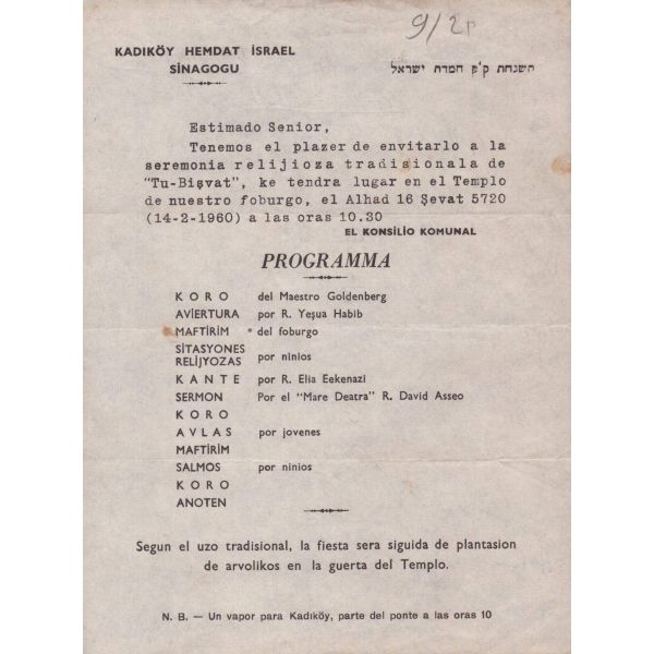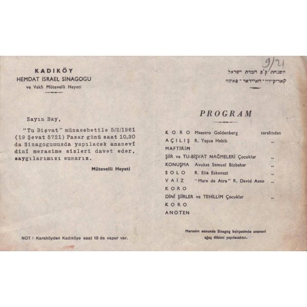 Kadıköy Hemdat İsrael Sinagogu antetli program ve bildirimler (5 adet),