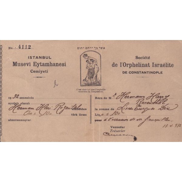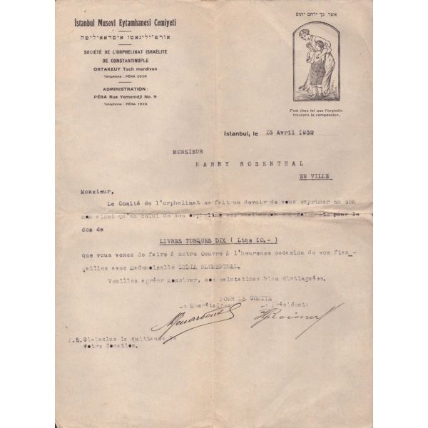 Or-Ahayim Cemiyeti bağış teşekkür belgesi (2 adet),