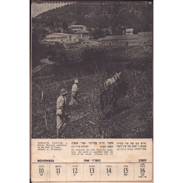 Söz konusu tarihte İsrail Devleti henüz kurulmamıştı. Her bir yaprağında dönem İsrail´inin sokakları, parkları, ziraati, eğitimi, deniz sporları, inşaat ve demir sanayii hakkında bilgilendirici görseller mevcuttur.