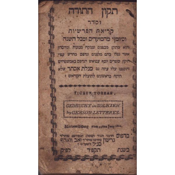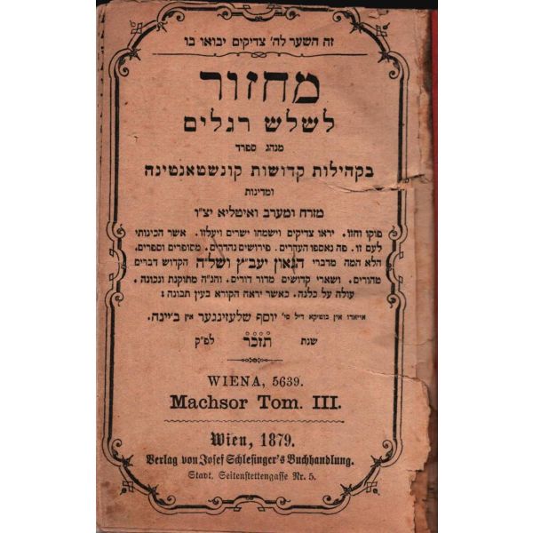 Yılbaşı dua kitabıdır. Sefarad geleneklerine göre Constantinople, İtalya´dan İstanbul´a kadar doğu ve batı cemaatleri içindir. 100. sayfadan 113. sayfaya kadar Tsom Gedalya Orucu ile ilgili bölüm mevcuttur.