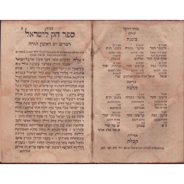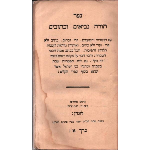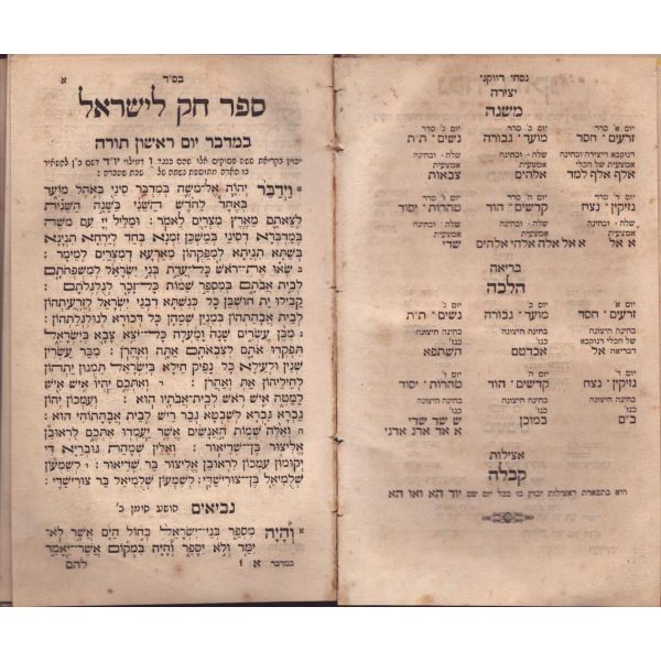 Sefarad - İtalyan - Eşkenaz geleneklerine göredir. Ek olarak Kral Süleyman´ın yazdığı Shir Hashirim, Rut-Eyha, Ester Efsanesi, Haftara (tamamlayıcı bölümler) mevcuttur.