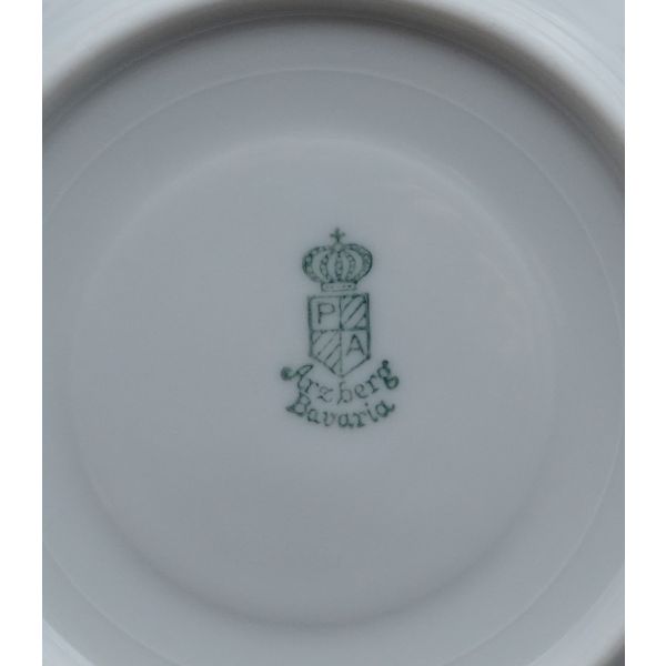 Fincan ve tabağın yüzeyinde altın yaldız şerit ve floral desenler mevcut olup fincanın dış yüzeyi ise ´´Münhen - Frauenkirche´´ çizimi ile süslenmiştir