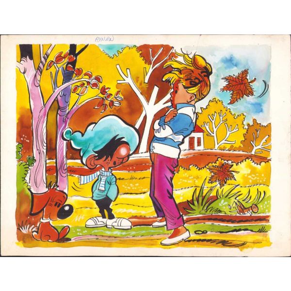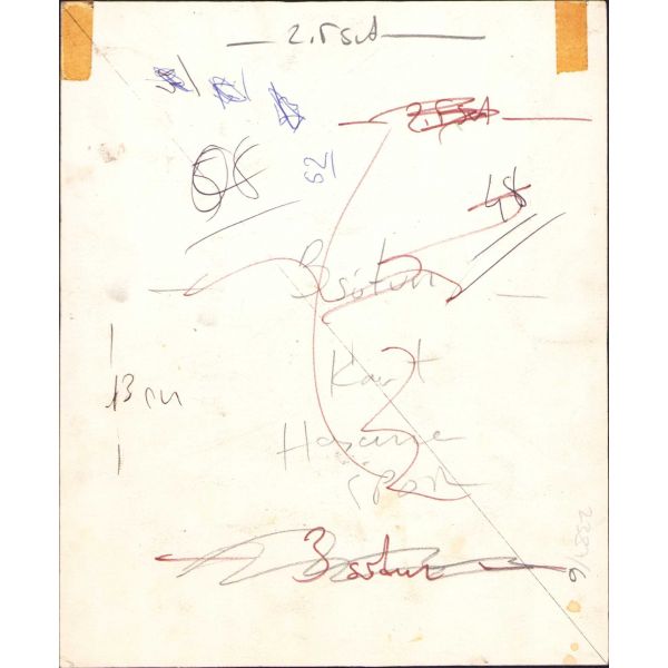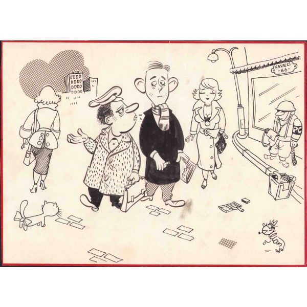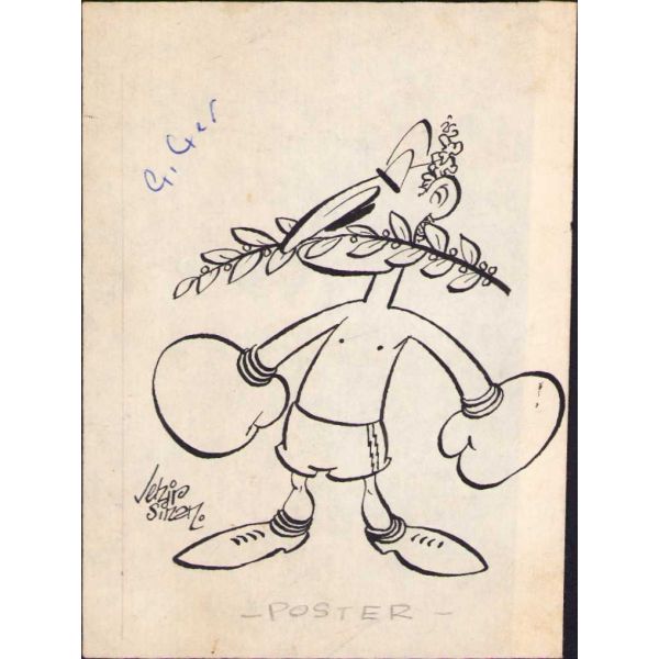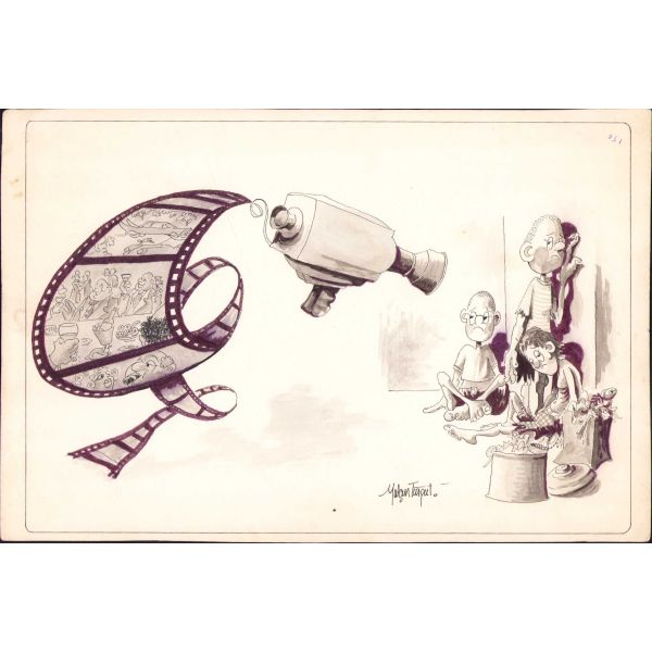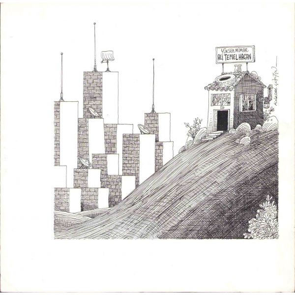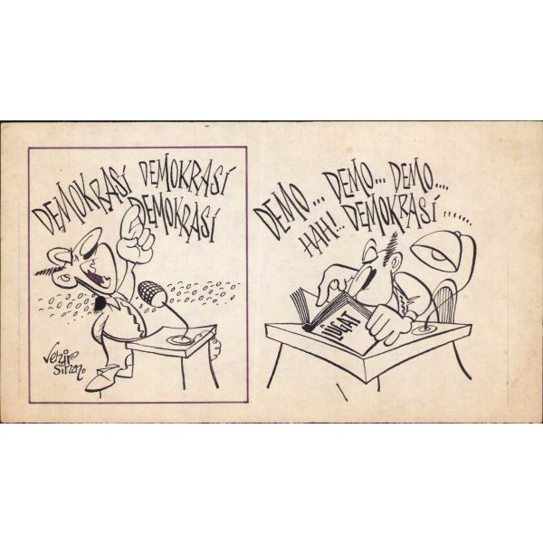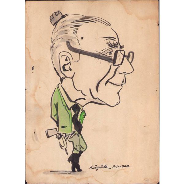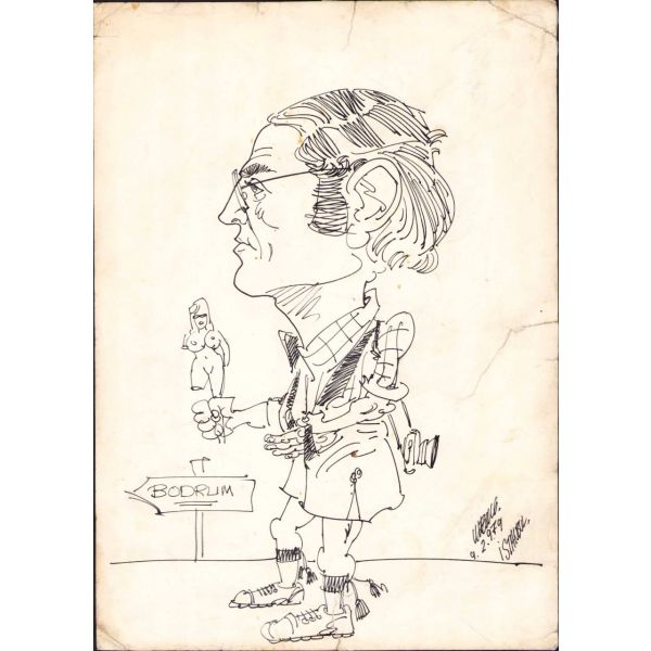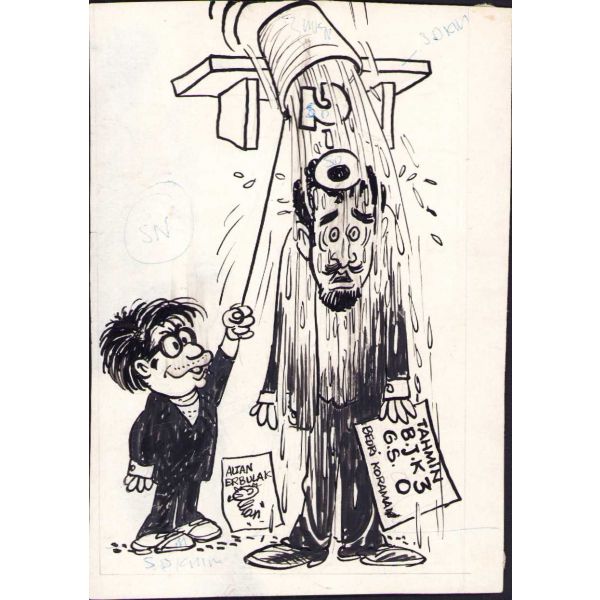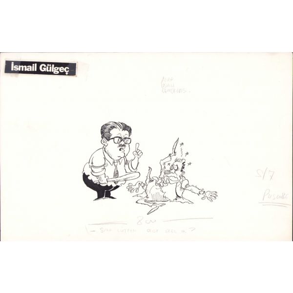 Arka yüzünde karikartür ve karikatüriste dair bilgiler içeren bir etiket mevcuttur.