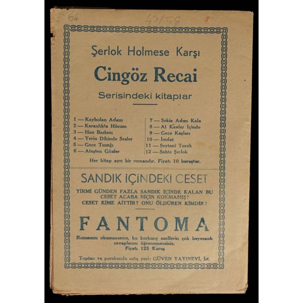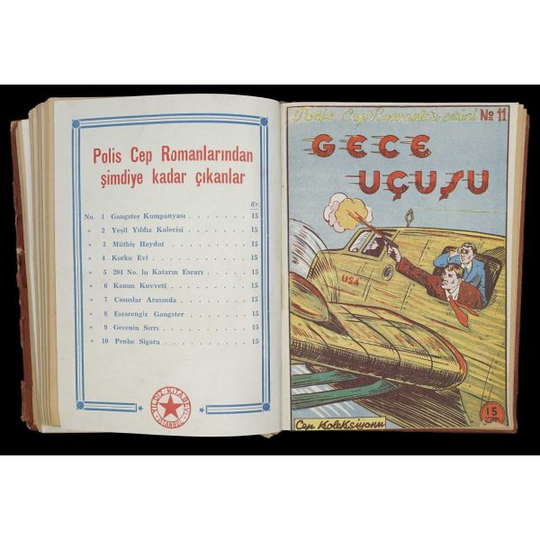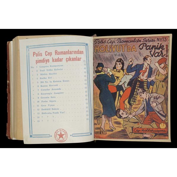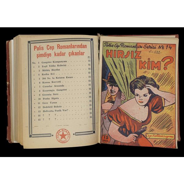 İlk macera hariç tamamı ön ve arka kapakları korunarak ciltlenmiştir. Maceralar: 1: Ganster Kumpanyası - 2: Yeşil Yıldız Kalecisi - 3: Müthiş Haydut - 4: Korku Evi - 5: 204 Nolu Katarın Esrarı - 6: Kanun Kuvveti - 7: Casuslar Arasında - 8: Esrarengiz Ganster - 9: Gecenin Sırrı (Ön kapağının üst bölümünde kesik mevcuttur) - 10: Pembe Sigara - 11: Gece Uçusu - 12: Detektif Boksör - 13: Holivut´da Panik Var! - 14: Hırsız Kim? - 15: 400.000 Frank Çalındı - 16: Esrarengiz Macera