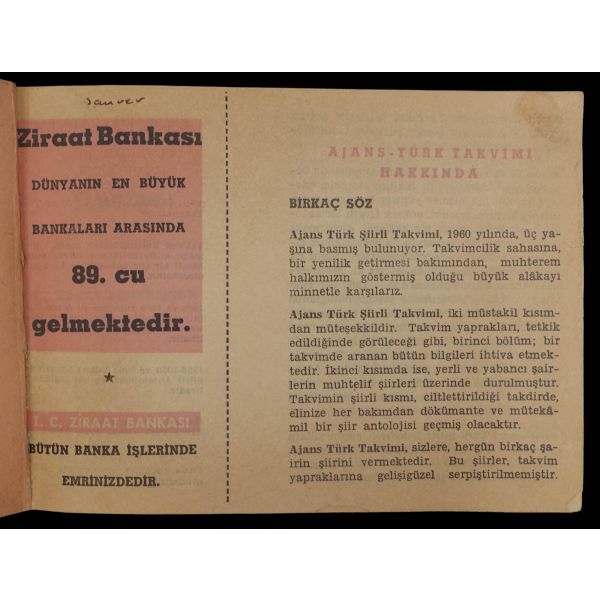 Ajans Türk takvimi şiirli ve saatlidir.
