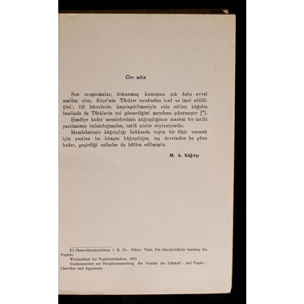 Türkiye'de kâğıtçılığın bânisi Mehmet Ali Kâğıtçı'nın, alanında bir ilk ve bir klasik olan eserinin çok temiz bir nüshası... Mehmet Ali Kâğıtçı, bu eserin her bir nüshasına; yakın dostu kemankeş, ebru sanatçısı, hattat, hezarfen Necmeddin Okyay'ın, farklı üsluplarda beşer adet orijinal ebrusunu koymuştur.