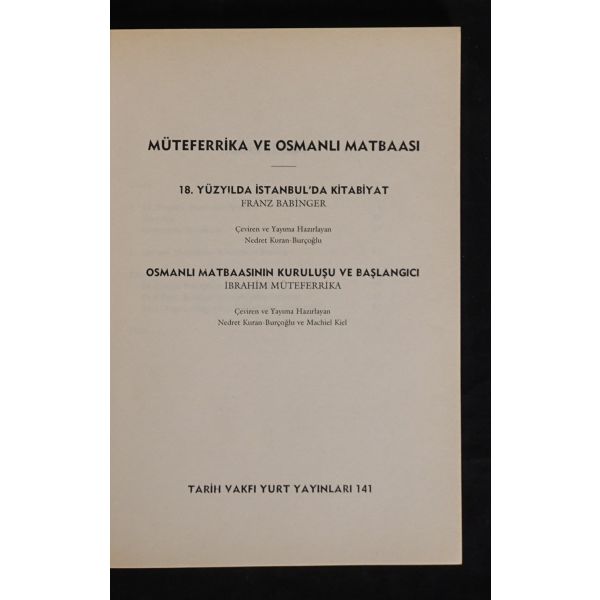 Franz Babinger'in Hollanda arşivlerinde bulduğu, İbrahim Müteferrikanın kendi çalışmaları ve yayımladığı kitaplarla ilgili, bir nevi "röportaj" niteliğindeki risaleyi de içeren eser, Müteferrika matbaası hakındaki önemli çalışmalardandır.