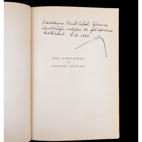 "Kardeşim Ferit Celal Güvene dostluğumuzun 51. yıl dönümü hatırası." ithafıyla, 9 Mart 1973 tarihinde imzalanmıştır.