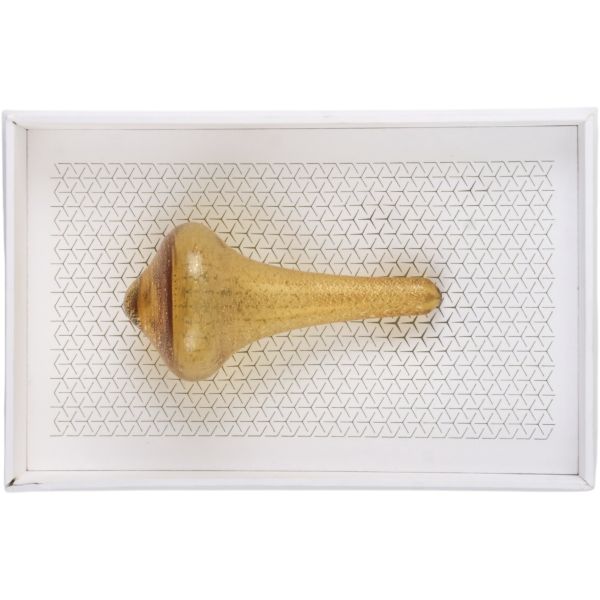 Güçlü ve kırılgan, görünüşte hareketsizmiş gibi dursa da durdurulamaz bir şekilde hareket eden bu sanat objesi; Murano´daki en seçkin İtalyan ustalar tarafından camdan titizlikle işlenmiş bir topacı temsil ediyor.