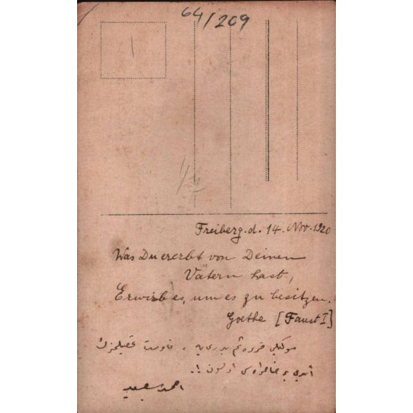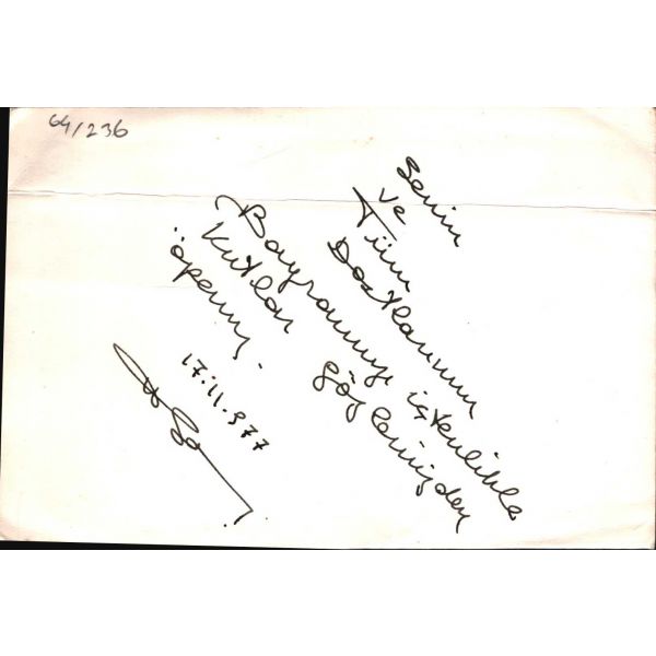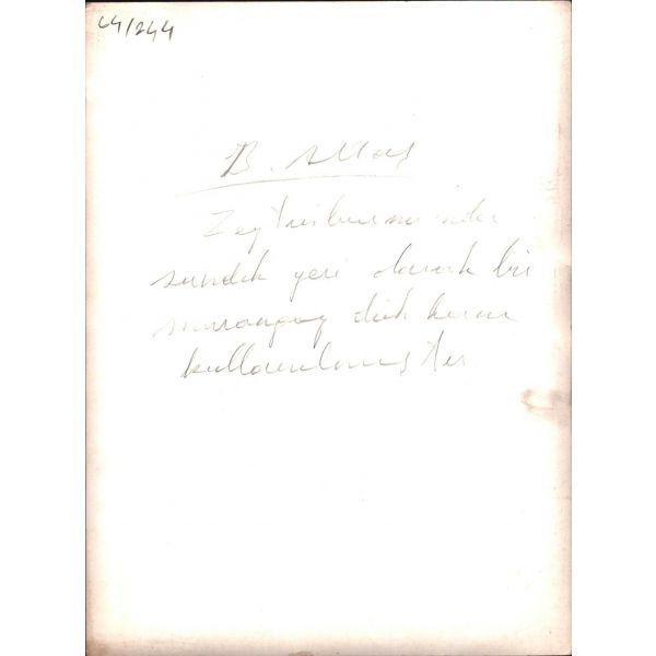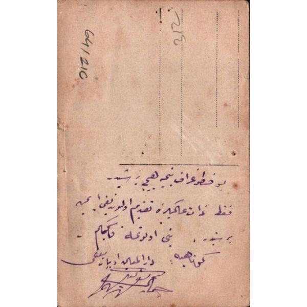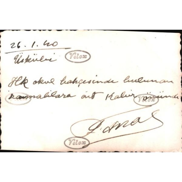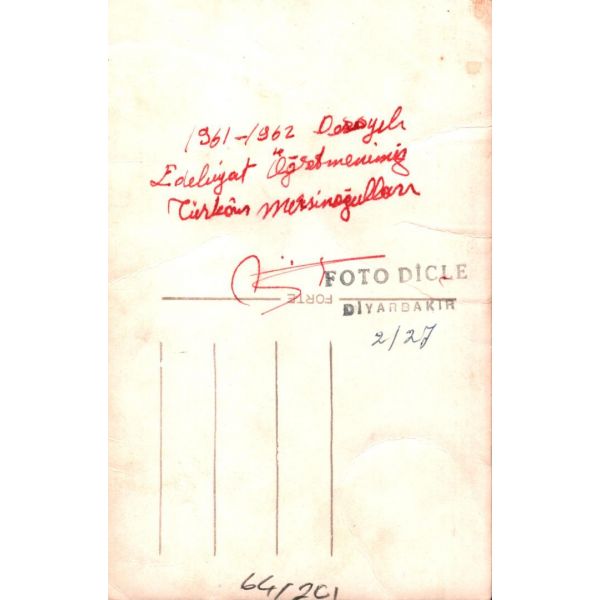 Fotoğrafta "X" ile işaretlenmiş [en sol] kız tarafından imzalı fotoğrafta Osmanlıca, "Pek sevdiğim Kasım Şerif Bey´e değersiz bir armağandır. 2 Temmuz 1337 / Bu fotoğraf, bence hiçbir şeydir fakat zât-ı âlinize takdim olunduğu için bir şeydir... Benim unutma Kasımcığım. Kütahya Dârülmuallîmin edebiyat muallimi Cemal ?" ithafı mevcuttur.