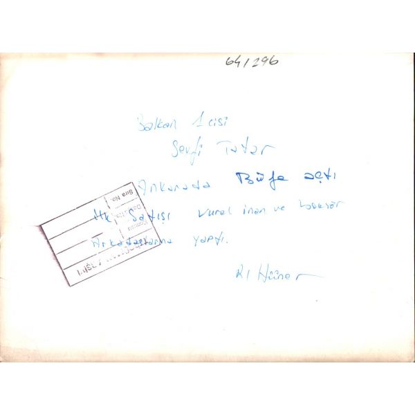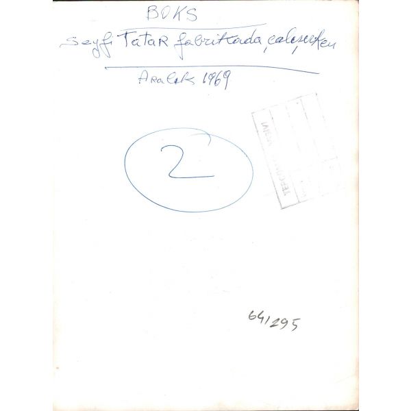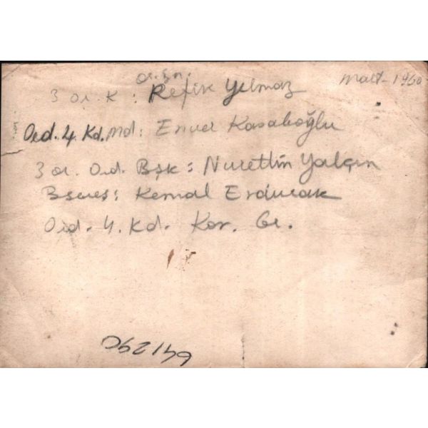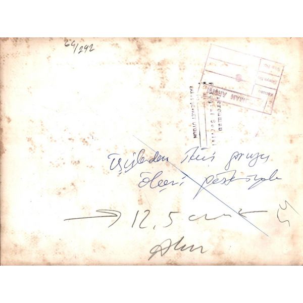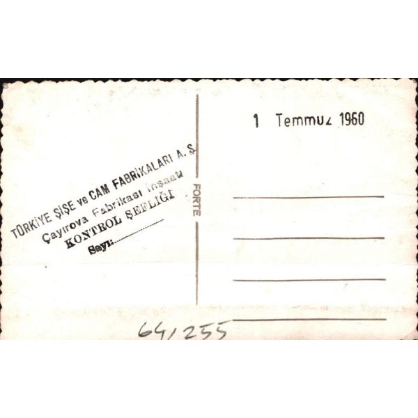 Arka yüzü "Türkiye Şişe ve Cam Fabrikaları A.Ş. Çayırova Fabrikası inşaatı Kontrol Şefliği" ve "1 Temmuz 1960" damgalıdır.