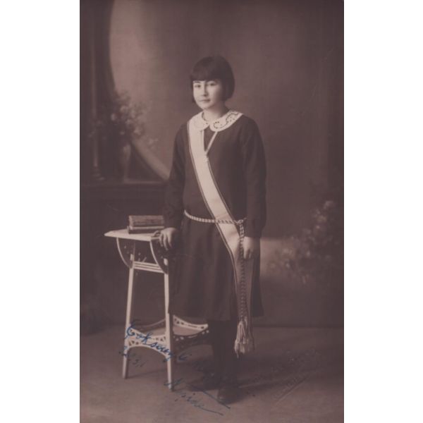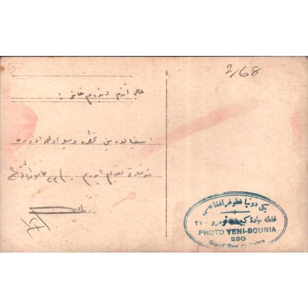 İthaf, "Almanya´da tahsil müddetinde çıkarmış olduğum şu fotoğrafiyi İstanbul´da mektebimizde bulunan Aziz Arkadaşım Bostancılı Fuad Bedri Beye bir hatıra-i uhuvvet olmak üzere gönderiyorum. 23 Kanunusani 1332 İskeçeli Biraderiniz Mehmed İzzed bin Şükrü" şeklindedir.