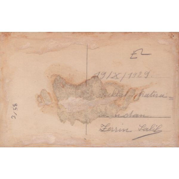 İthaf, "Hacı Annem ? Hanıma, istikbâlde beni tahattura vesile olmak üzere şu kartı takdim ederim. 23 Kanunuevvel 1927" şeklindedir. Fon perdesinde Rumeli Hisarı ve Boğaziçi yer almaktadır.