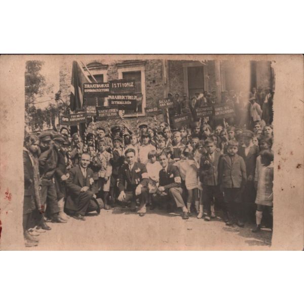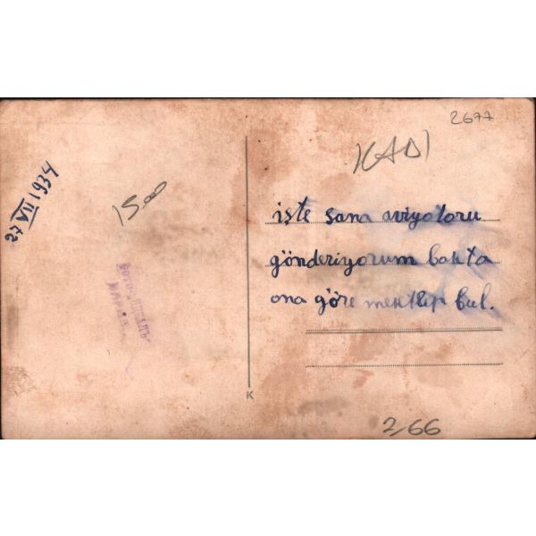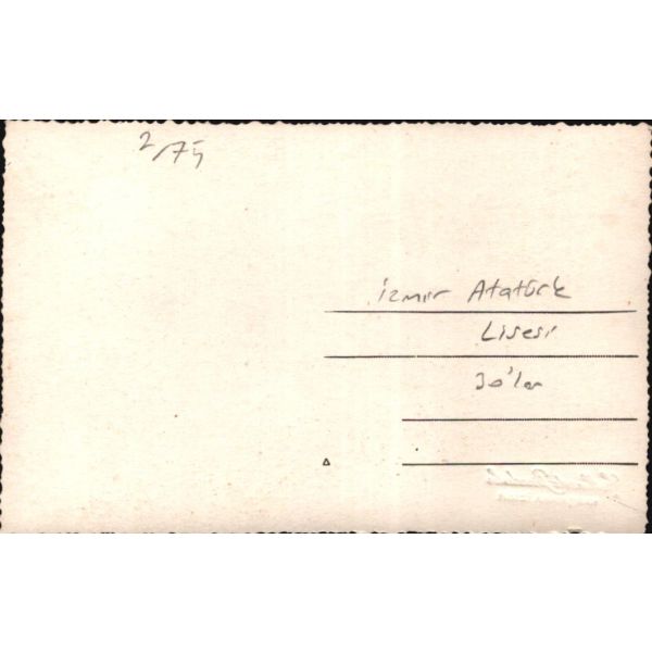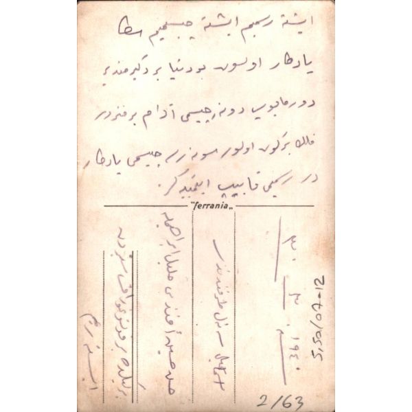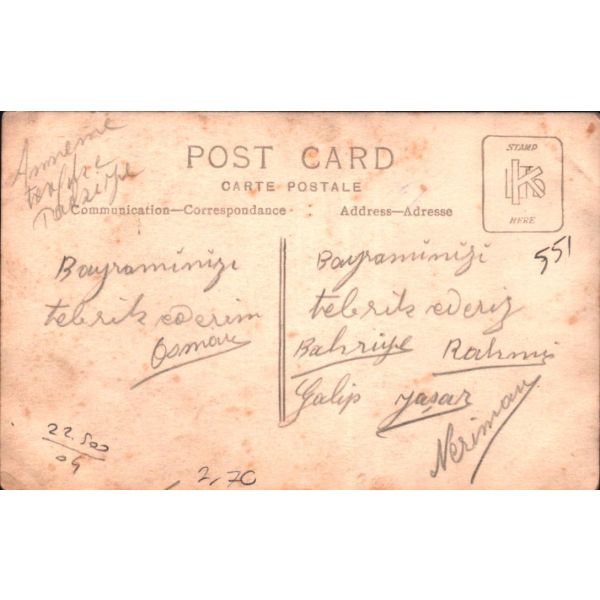 "Bayramınızı tebrik ederim. Osman" - Bayramınızı tebrik ederiz. Bahriye, Rahmi, Galip, Yaşar, Neriman" Fon perdesinde Kız Kulesi´nin de görüldüğü bir İstanbul manzarası yer almaktadır.
