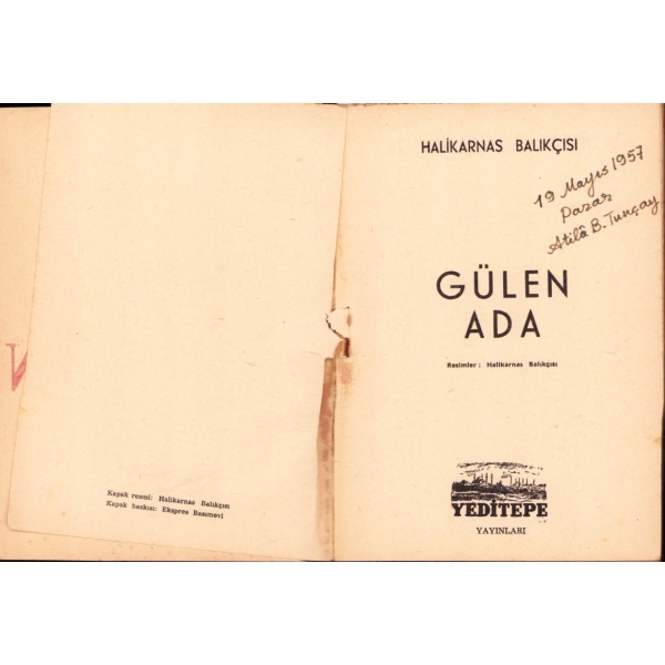 İlk sayfasında ''19 Mayıs 1957 Pazar - Atila B. Tunçay'' şeklinde şahıs imzası vardır
