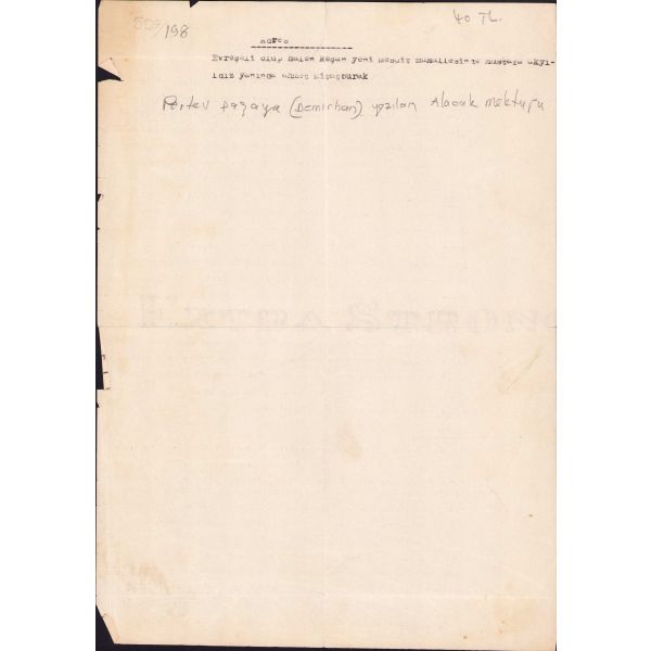 Kütahya'dan gönderilen şahsi bir mektup.