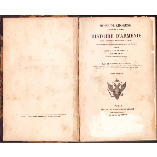 Tarihçi Moise de Khorene'in Ermeni Tarihi. Rus Çarı Nicola I'e atfedilmiş.