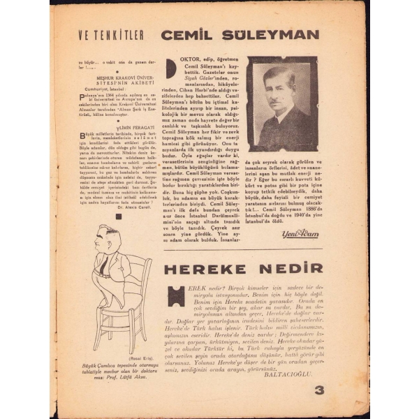 İsmail Hakkı Baltacıoğlu tarafından 1 Ocak 1934 tarihinde çıkarılmaya başlayan kültür-edebiyat ve fikir dergisi Yeni Adam'ın yayın amacı, Baltacıoğlu tarafından şu sözlerle açıklanmıştır: "Her gazete, sahibinin tabiatını taşır, benim gazetem de bana benzeyecektir. Yaratıldığım günden beri demokratça yaşadım, ölünceye kadar da demokrat kalacağım. Bütün yaşayışımda güzellik, iyilik ve doğruluk için çalıştım. Gazetem bu ülkülere hıyanet edemez."