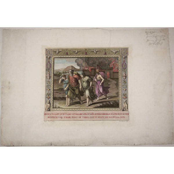 Rafael'in Vatikan'daki freskosundan alınmış bir gravür olup, elle renklendirilmiş olması muhtemeldir.