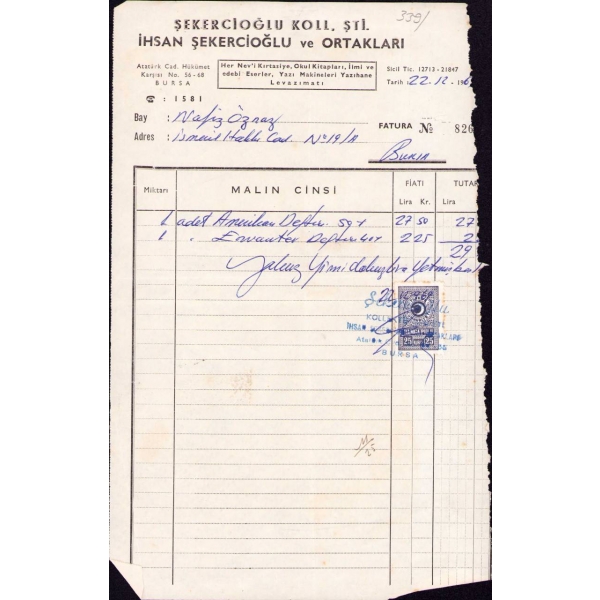 Osmanlı’dan Türkiye’ye Esnaflık Tarihi; Bursa’da üç nesildir ticaretle uğraşan Bezzaz Ata Efendi ile oğlu ve torununa ait tereke. Ticaret kayıtları ve mektupları içermektedir.