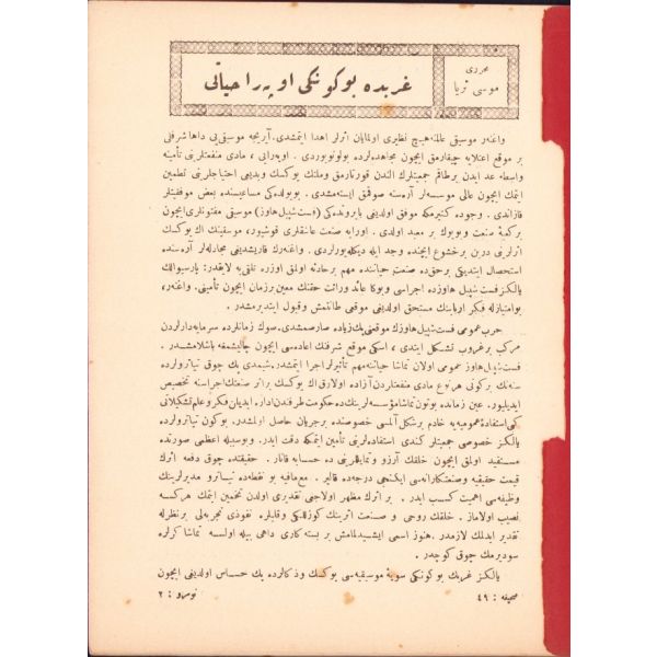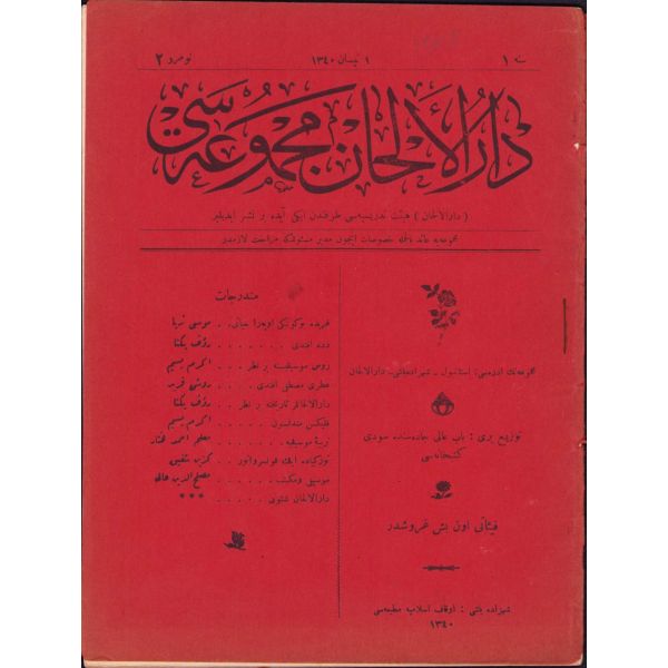 Türk bestekâr Rauf Yekta'ya ait "Dede Efendi" ve "Dârül-Elhânlar Tarihine Bir Nazar" makalelerinin yanı sıra "Garbda Bugünkü Opera Hayatı", "Rus Musikisine Bir Nazar" vd. başlıklı yazıları içermektedir.