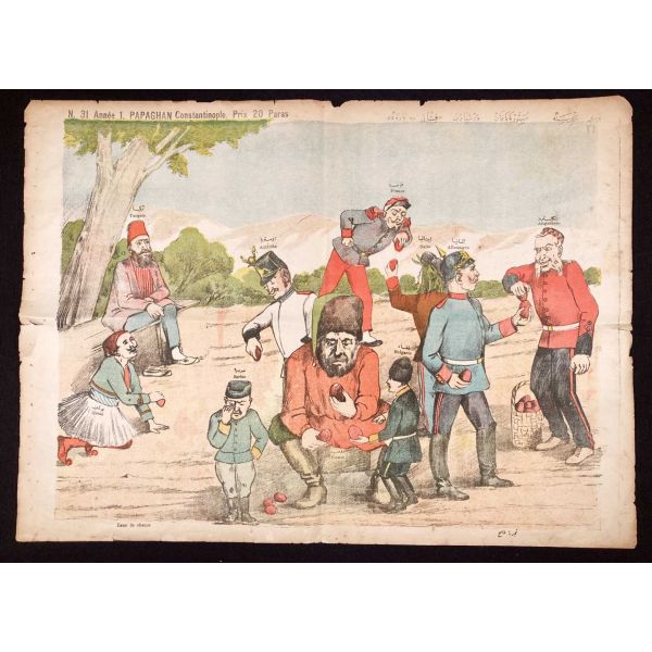 Ön kapak görsel yazısı: "Gazetelerden: Şehzadebaşı ... Turşucu Cemal Efendi bir başına bütün Bayezid merkezi efradına dayak atmışdır! -Turşucu Cemal'in turşuları!.." *Türkiye'nin en uzun ömürlü mizah dergilerinden olan Akbaba, 1922 yılında Yusuf Ziya Ortaç ve Orhan Seyfi Orhon tarafından kurulmuş ve kesintilerle birlikte 1977'ye kadar yayın hayatını sürdürmüştür. Zaman içerisinde de toplumun yoksul kesiminin dergisi olarak geniş bir okuyucu kitlesine ulaşmıştır.