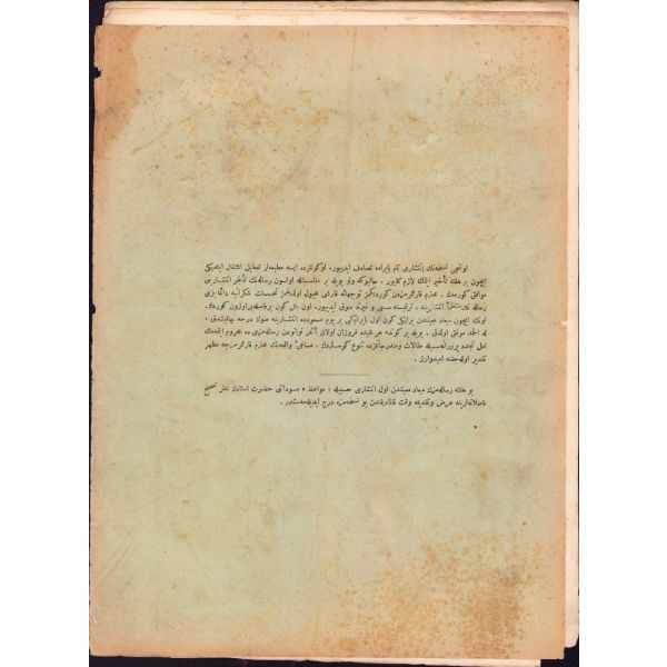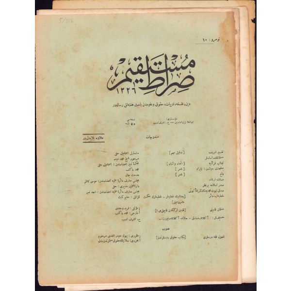 Mehmed Akif'in desteği ve başyazarlığı ile Eşref Edip tarafından yayımlanan dergi, İslam dünyasının uyanması ve yükselmesi için çalışmayı en kutsal görev bildiğini belirtmiş ve meşrutiyet yanlısı bir tavır benimsemiştir. Yazar kadrosunda Babanzade Ahmed Naim, Yusuf Akçuraoğlu, Şerefeddin Yaltkaya, İbrahim Alaeddin Gövsa gibi isimler yer aldığı derginin bu sayısında Şeyh Muhammed Abduh, Manastırlı İsmail Hakkı Mehmed Akif, Midhat Cemal ve Eşref Edib'e ait yazılar bulunmaktadır.