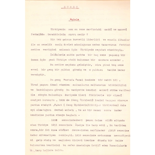 Makale, "Türkiyenin son on sene zarfındaki maddî ve manevî fevkalâde terakkisinin sırrı nedir?" konuludur. Mektuptan bir kesit: "Şimdi Mustafa Kemal paşanın merkezi hükûmeti neden Ankaraya naklettiğini anlıyorum. … Bu Constantinople -ki şimdiki ismi İstanbuldur- çok çalışmağa mani olacak kadar güzeldir. Bundan maada İstanbulda lüzumundan fazla anane [gelenek] vardır. Şarkın atalet ve kesil [tembellik] ve lüks ananesi, Bizansın inhitat ananesi, ayni zamanda bir çok milletleri cami ve Türkiyede en az Türk şehri olan bir şehirdir. ... Ankara tamamile Türktür. Memleketin ırkile meskûndur."