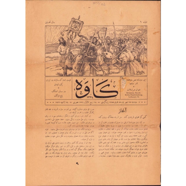 Hasan Takizade tarafından siyasi içerik üretmek üzere 1914'te Almanya'da yayın hayatına başlayan dergi, yazılarını Rusya karşıtlığı ve Almanya sempatizanlığı temeline oturtmuş ve İran halkını bu doğrultuda etkilemeyi amaçlamıştır. Dergi Almanya tarafından finanse edilmiştir.