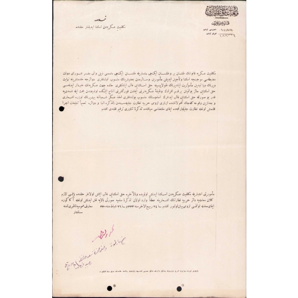 Zarfın üzerinde Osmanlıca, "İstanbul'a gidecekdir. Üsküdar'da Ayazma'da Bostan sokağında 27 numaralı Vahid Paşa merhumun köşkünde … Hanımefendi'ye" yazmaktadır.