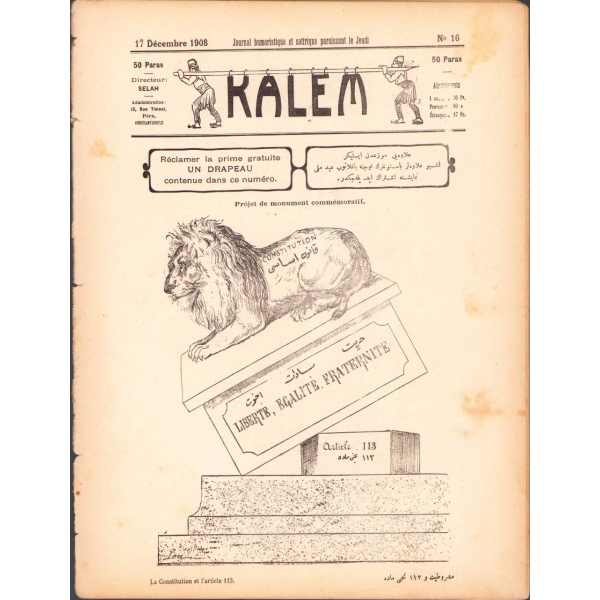 Ön kapak görsel yazısı: "Fes fabrikalarını sıyanet [koruma] maksadıyla Avusturya İmparatoru kendisi ve Avusturya ordusu için fesi serpuş-ı resmî [resmî başlık] olarak kabul etmişdir."
