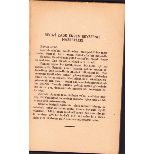"İthaf, "Pederim Kemal Beyefendi'ye: İstiklâl muharebeleri esnasında sizlerden vazife-i vataniye ve müdafaa-i vatan için uzaklaşan oğlunuzun yeni tayyarecilik mesleğinde çıkartdığı fotoğrafı bir hatıra-i hürmet olarak arz ve takdim kılındı efendim. - Oğlunuz Tayyareci İlham?" şeklindedir.