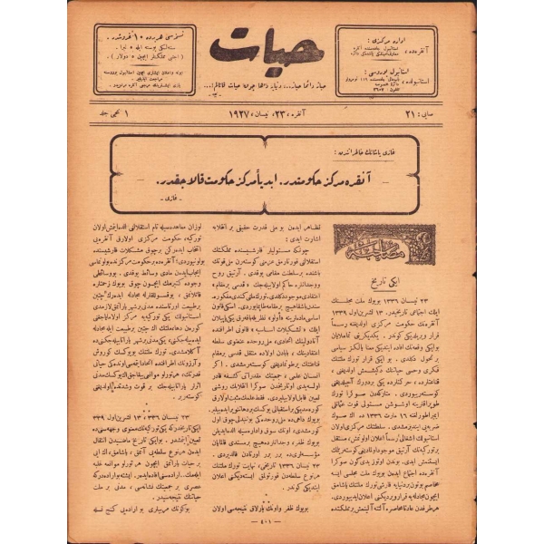 "Hilafetin Siyaseti", "Hakimiyet-i Milliye", "Lozan Konferansı Evvelki Gün Küşad Edilmiş ve Müzakerata Başlamışdır" vd. başlıklı haberleri içermektedir.